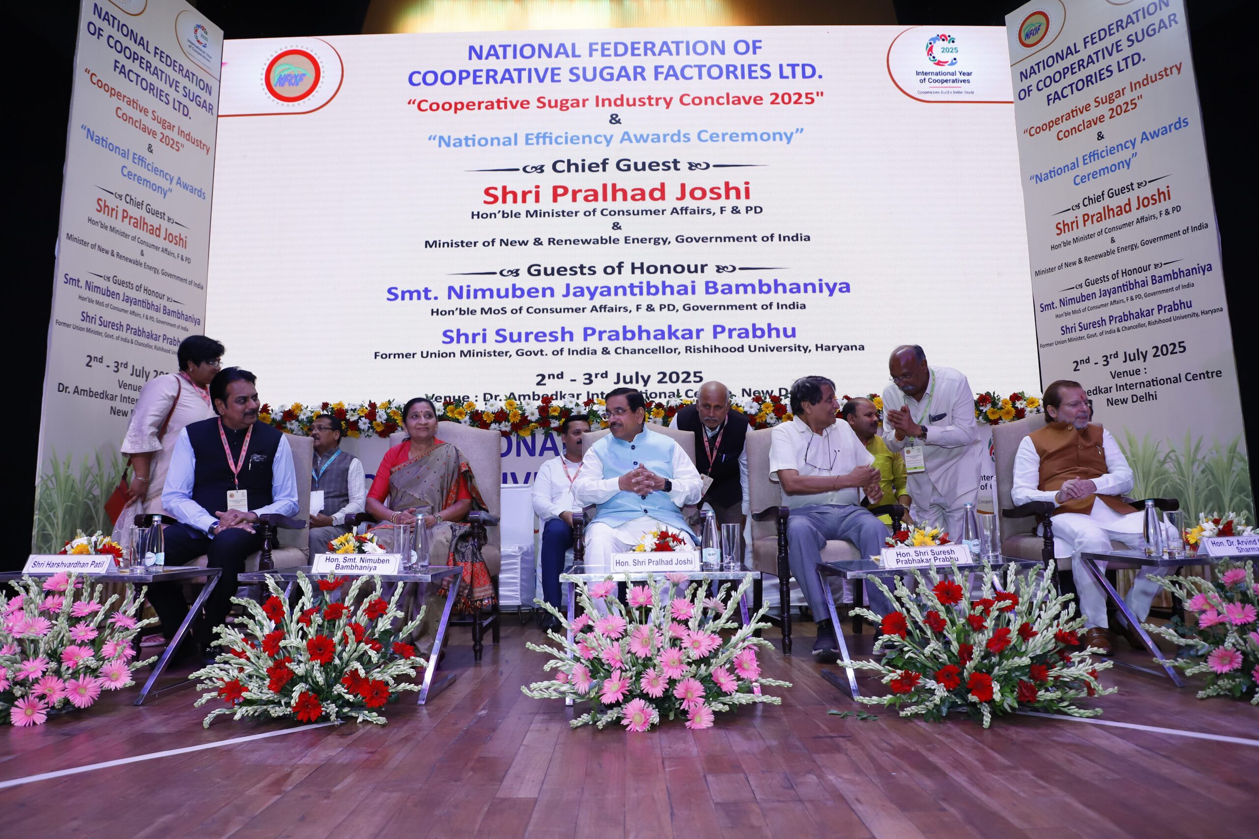 A total of 25 cooperative sugar mills were felicitated for their performance during the 2023–24 season. Categories ranged from technical efficiency, cane development, sugar recovery, financial performance, to overall factory excellence. The awards were jointly presented by Shri Pralhad Joshi, Minister of State Smt. Nimuben Bambhaniya, and former Union Minister Shri Suresh Prabhu, in the presence of cooperative leaders from across India.